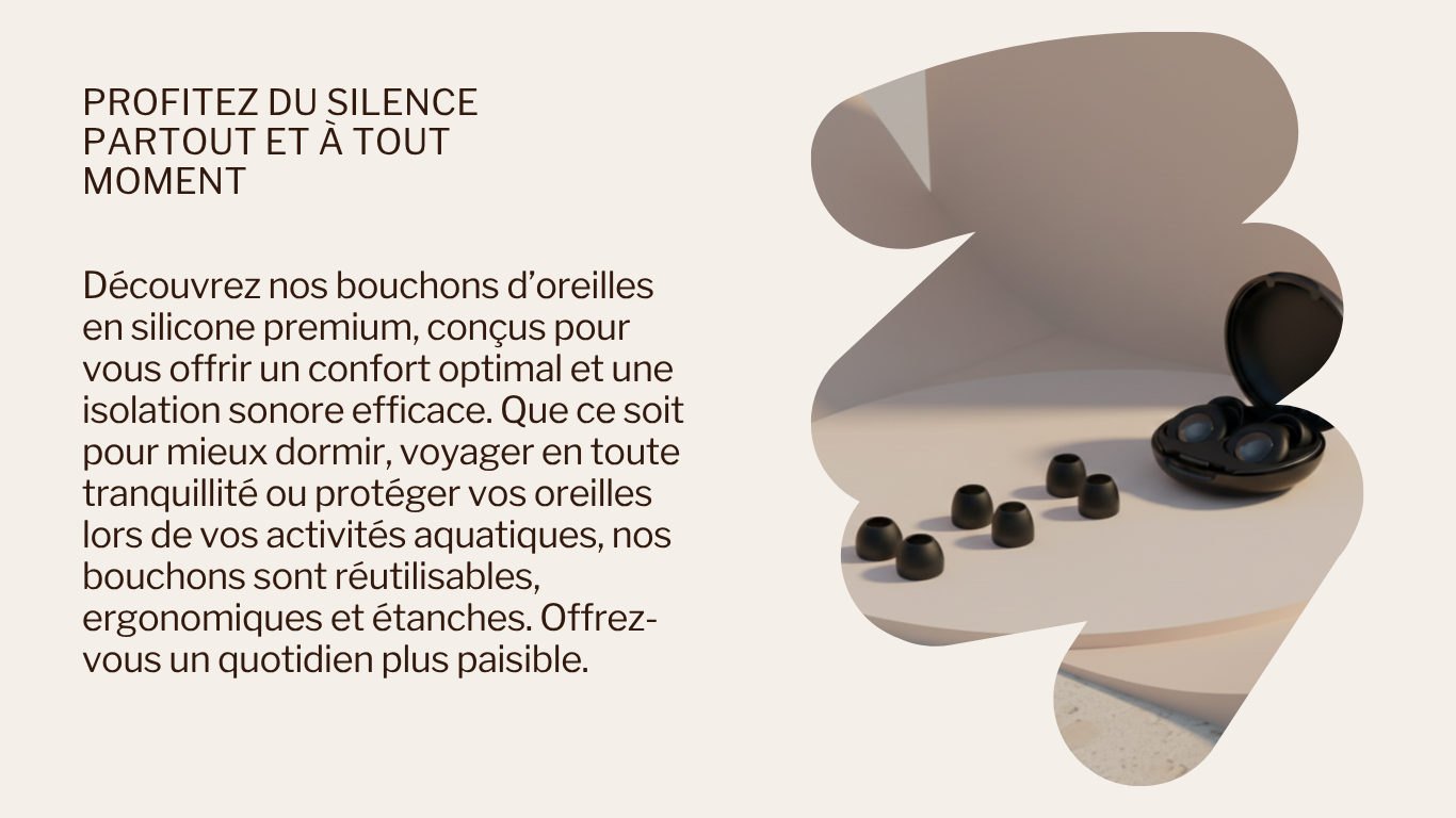 Que vous soyez à la recherche d’un sommeil paisible, d’une protection auditive ou d’une solution pour vos activités aquatiques, nous avons pensé à tout.
